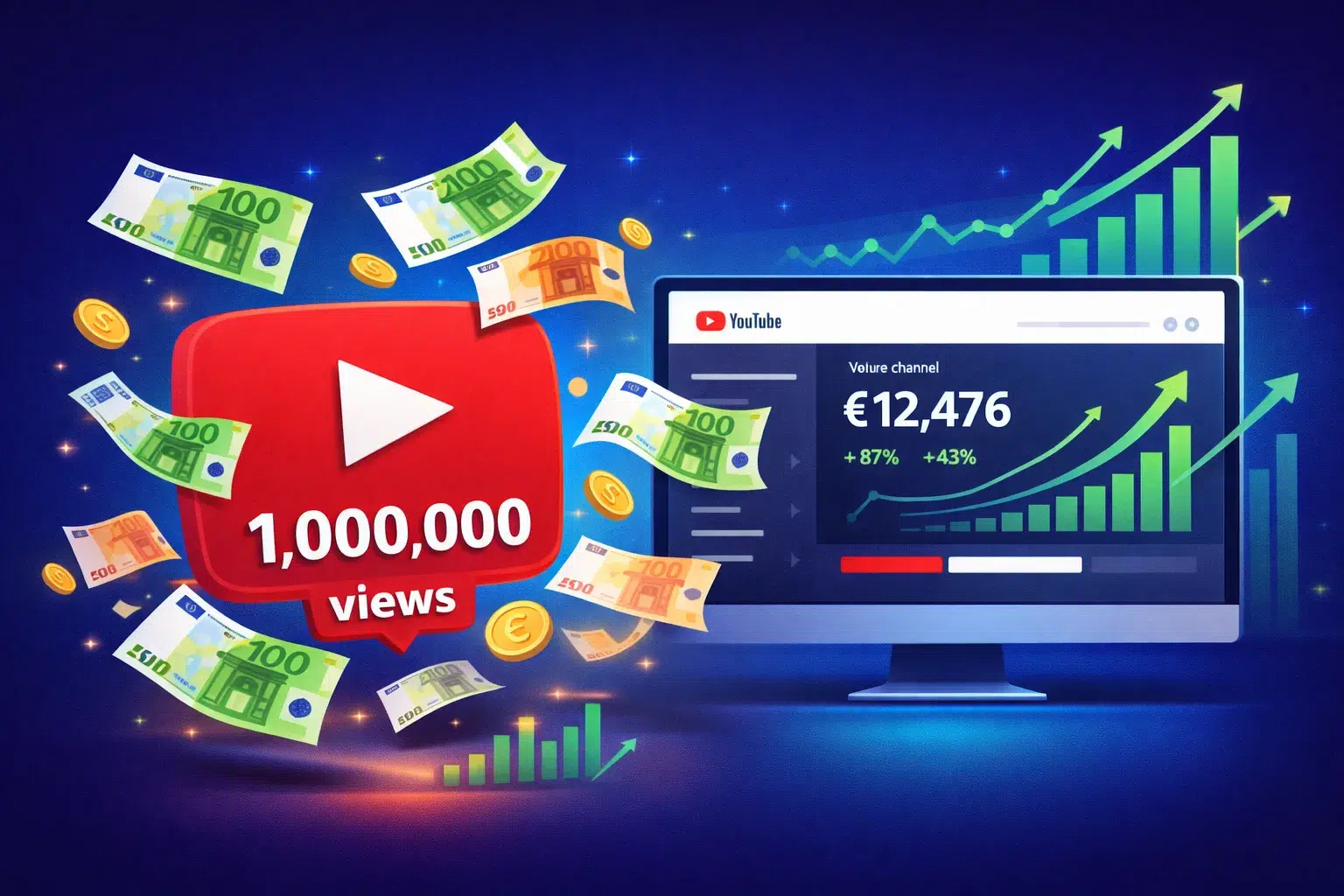 En résumé, combien paye YouTube pour 1 million de vues en 2026 dépend de nombreux facteurs. La fourchette réaliste se situe entre 800 € et 5 000 € pour une chaîne française, avec des extrêmes pouvant aller de 400 € (musique/Shorts) à 25 000 € (finance/investissement).